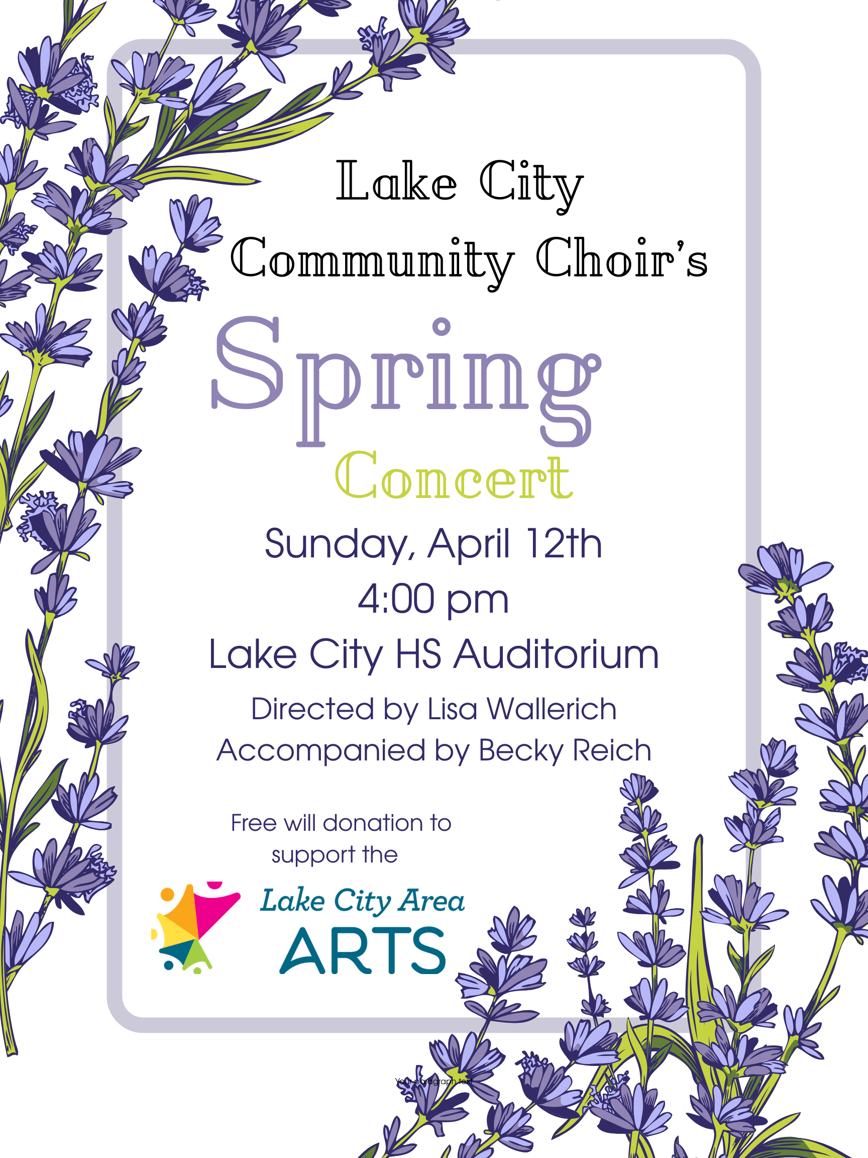 April 12th (Sunday) - 1:30 pm. Community Choir Concert, Lincoln High Auditorium